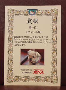 オレ、県大会のときの表彰状だってモノクロだったのに・・・。