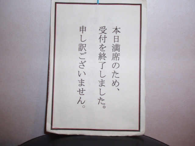 「緊急!」という場合でも、できれば前日までにお席の有無をご確認くださいませ。。。