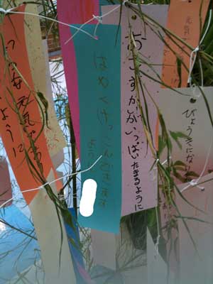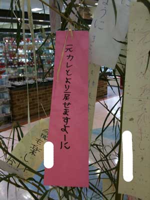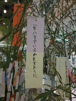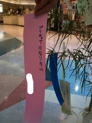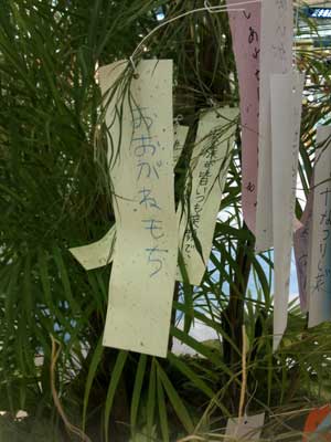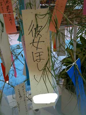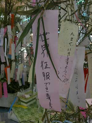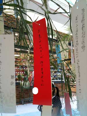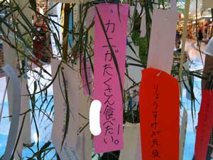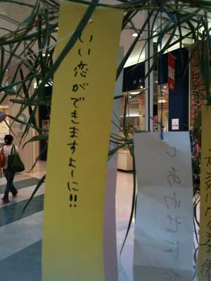 で、シネコンの併設されてるショッピングモールに七夕の笹。 短冊。